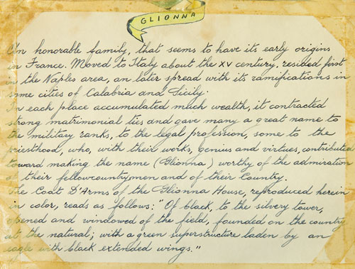 Glionna family Coat of Arms (A gift from D’Arcy Glionna, 2008)
